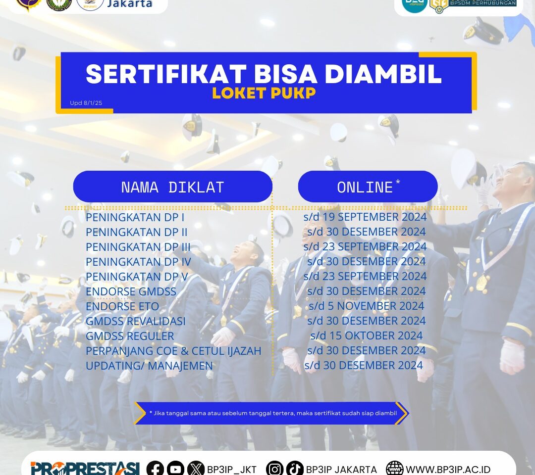 #bp3ipbisa #bp3ipsekolahkami #diklat #pelaut #diklatpelaut #peningkatan #diklatpeningkatan #diklatonline #upgrading #updating #keterampilan #pelautonline #pelauthebat #pelautindonesia #ijazah #sertifikat #pukp