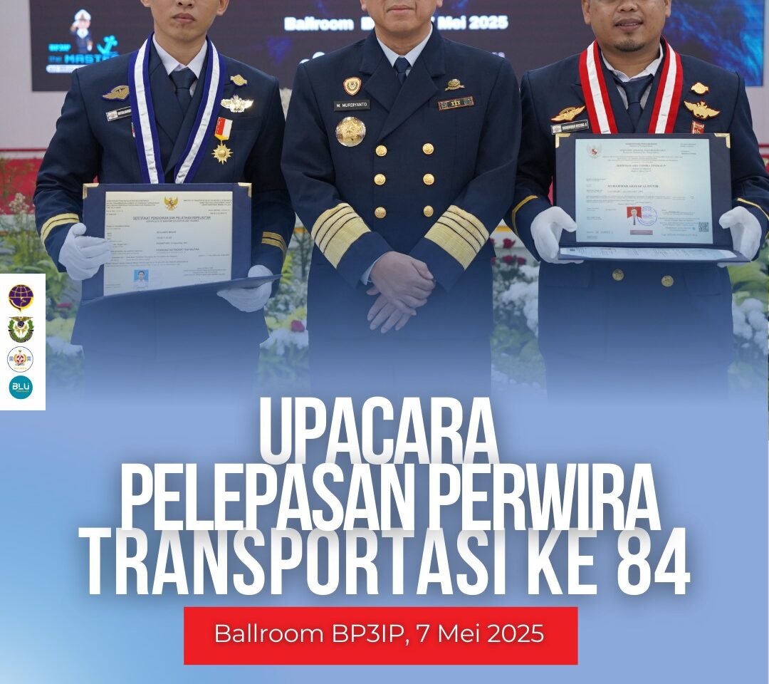 Upacara Pelepasan Perwira Transportasi Ke-84 lulusan Program Diklat Pelaut Tingkat III Bidang Keahlian Nautika dan Diklat Pelaut Tingkat IV Bidang Keahlian Teknika Gelombang 6 Tahun 2024 dilaksanakan di Ballroom BP3IP, Selasa (07/5/2025).