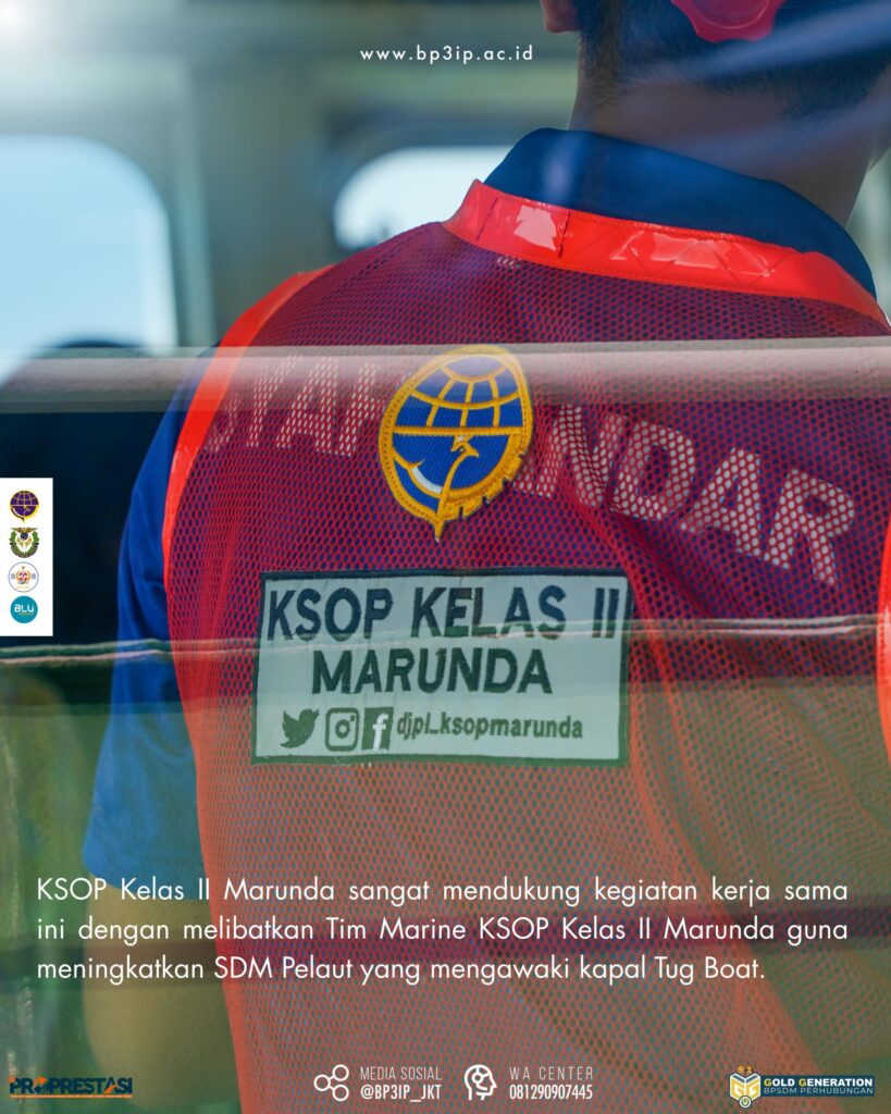 KSOP Kelas II Marunda sangat mendukung kegiatan kerja sama ini dengan melibatkan Tim Marine KSOP Kelas II Marunda guna meningkatkan SDM Pelaut yang mengawaki kapal Tug Boat.