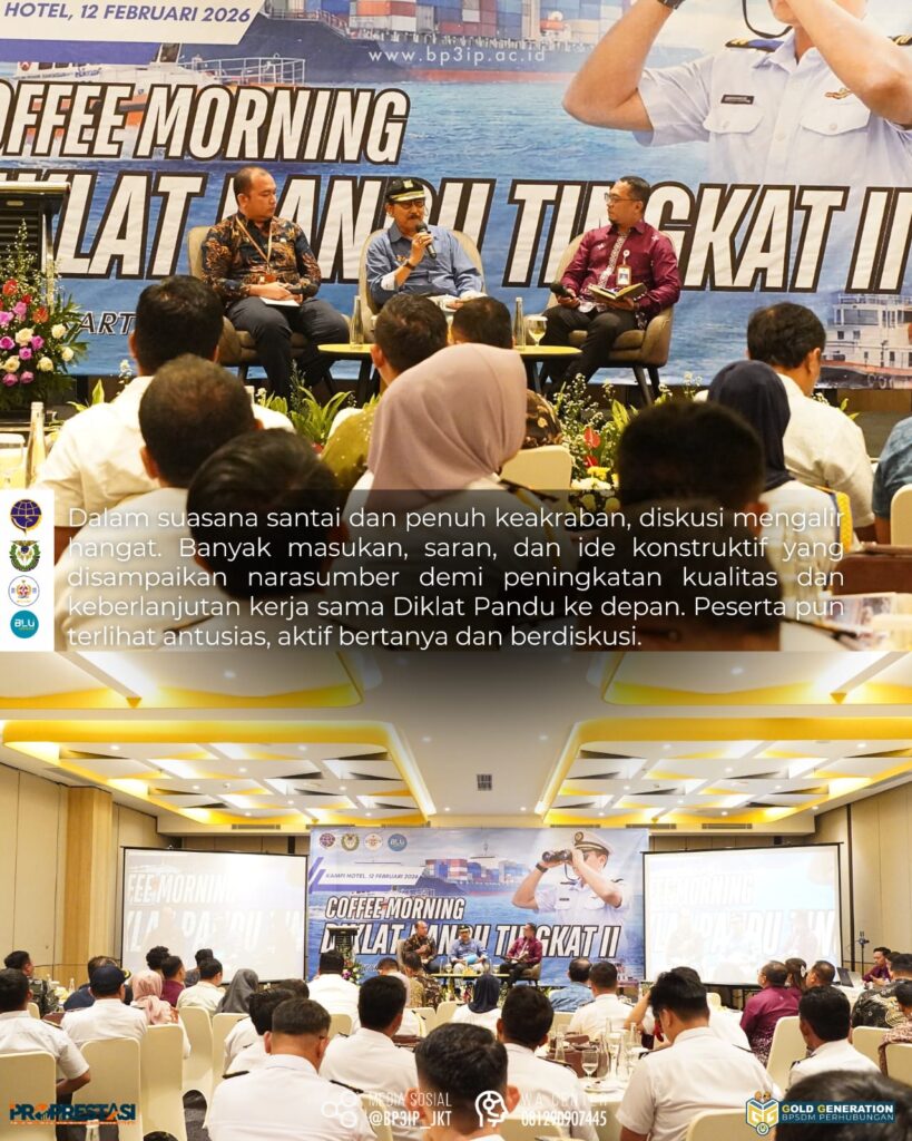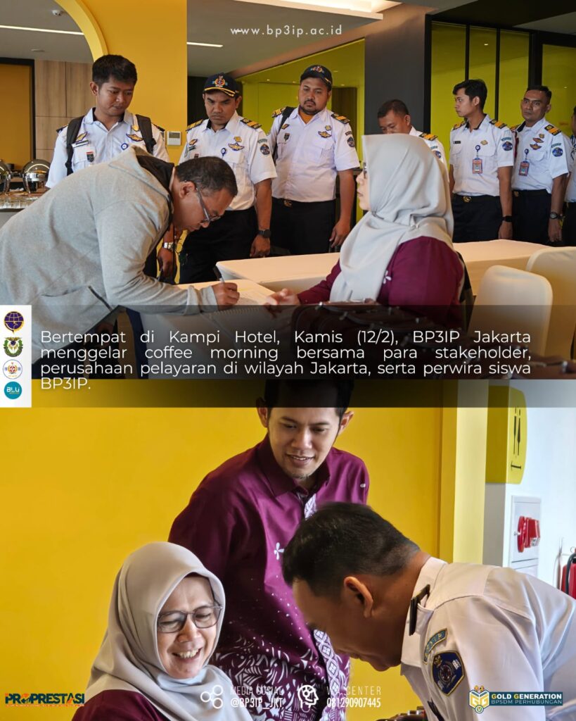 Bertempat di Kampi Hotel, Kamis (12/2), BP3IP Jakarta menggelar coffee morning bersama para stakeholder, perusahaan pelayaran di wilayah Jakarta, serta perwira siswa BP3IP.