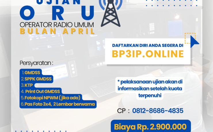 Hi #SobatpelautSudah dibuka nih Operator Radio Umum (ORU) diВРЗІР…. Untuk persyaratan boleh diperhatikan yaahh :1. Fc GMDSS2. Fc SPPK GMDSS3. Fc KTP4. Print Out GMDSS5. Fc NPWM (jika ada)6. Pas Foto 3×4, 2 Lembar berwarna Pembekalan Ujian mulai 17 Juli 2023dan Ujian Negara REOR dilaksanakan