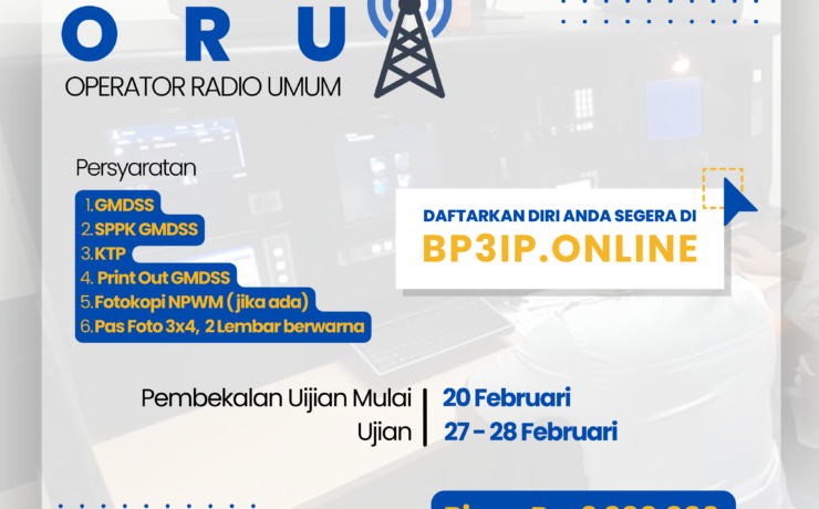 Hi #Sobatpelaut Sudah dibuka nih Operator Radio Umum (ORU) di BP3IP.. Untuk persyaratan boleh diperhatikan yaahh :1. GMDSS2. SPPK GMDSS3. KTP4. Print Out GMDSS5. Fotokopi NPWM (jika ada)6. Pas Foto 3×4, 2 Lembar berwarna Pembekalan Ujian mulai 20 Februari 2023dan Ujian Negara REOR dilaksanakan 27